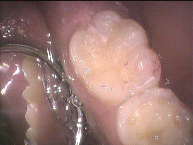 14歳、男の子、第二大臼歯の初期虫歯の症例です。